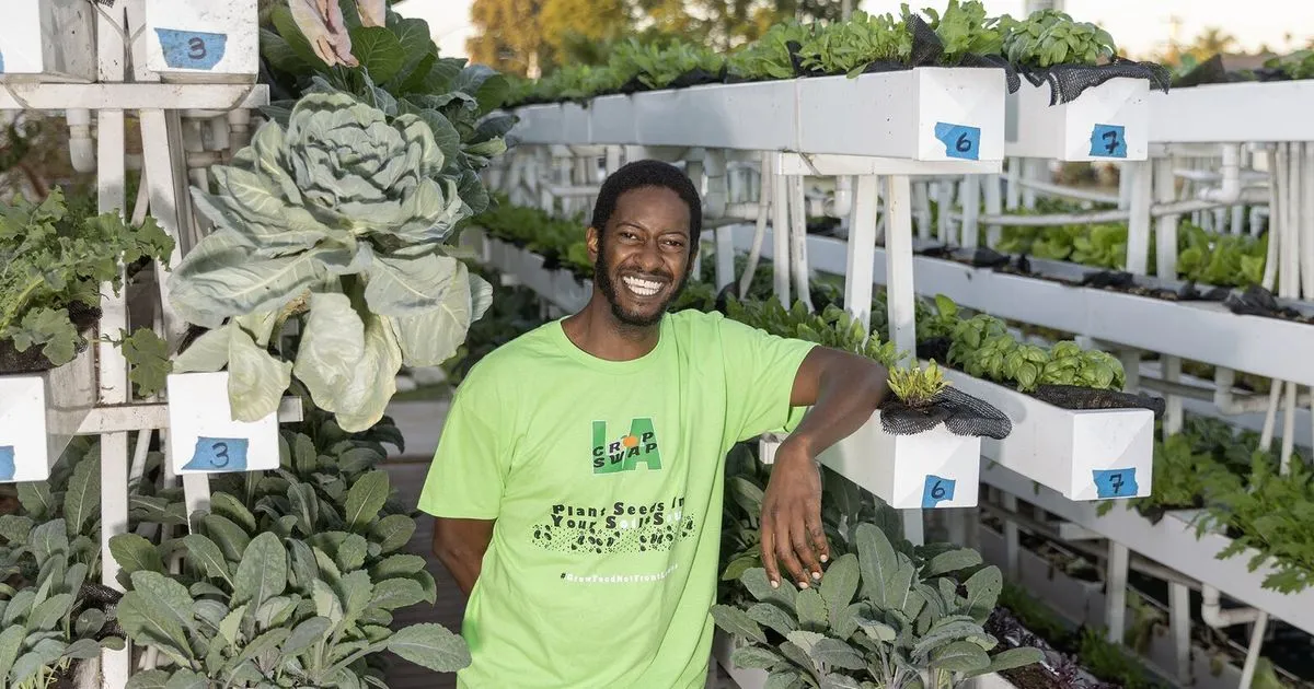 Crop Swap LA, founded by Jamiah Hargins, transforms Los Angeles lawns into microfarms that produce fresh, organic produce for local families while conserving water.
