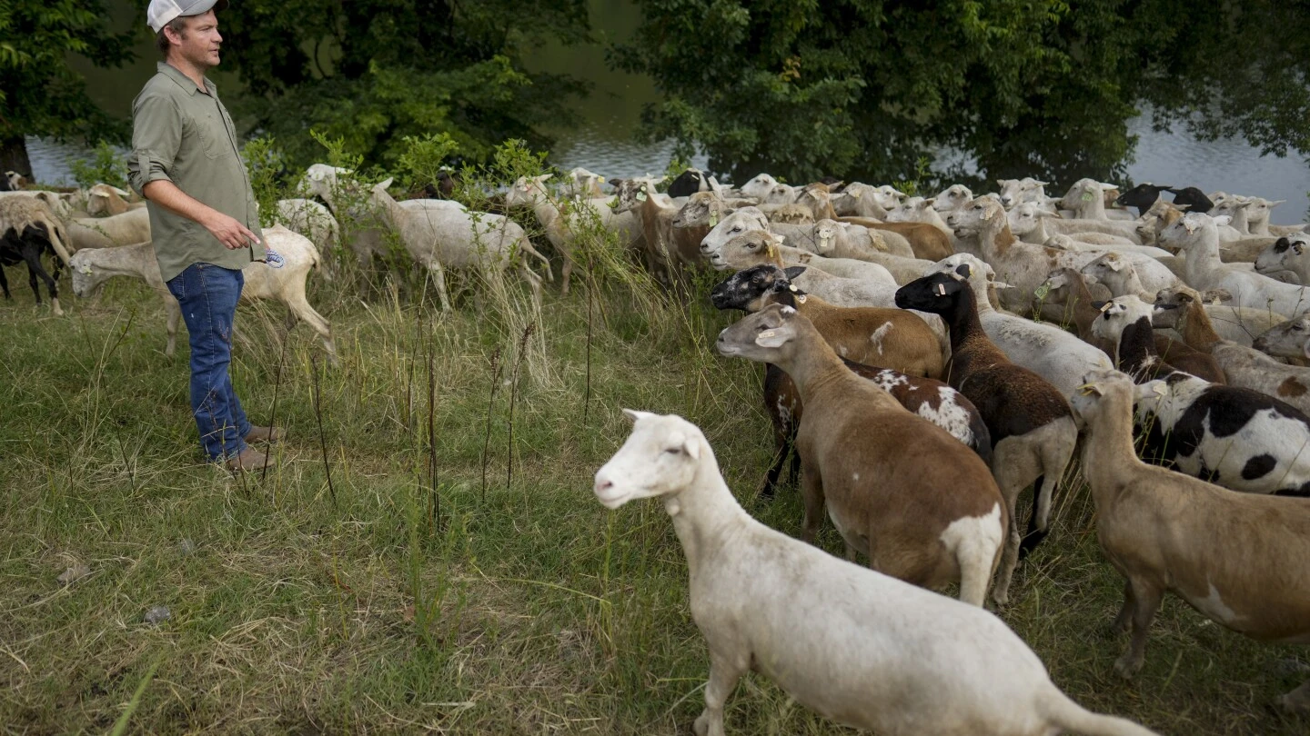 Along the Cumberland River just north of downtown Nashville, Tennessee, tourists on party pontoons float past the recognizable skyline, but they also can see something a little less expected: hundreds of sheep nibbling on the grass along the riverbank.
