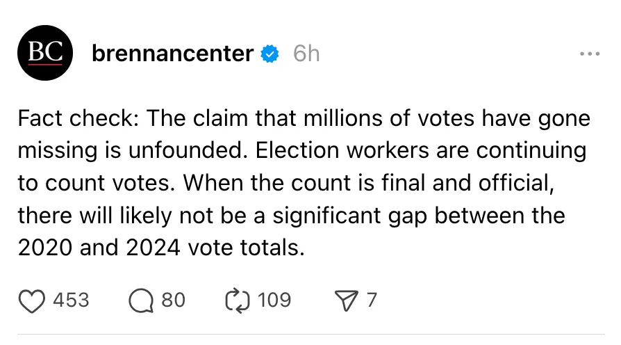 If you see allegations of "millions of missing votes" or voting machine fraud, please don't amplify them! Instead: