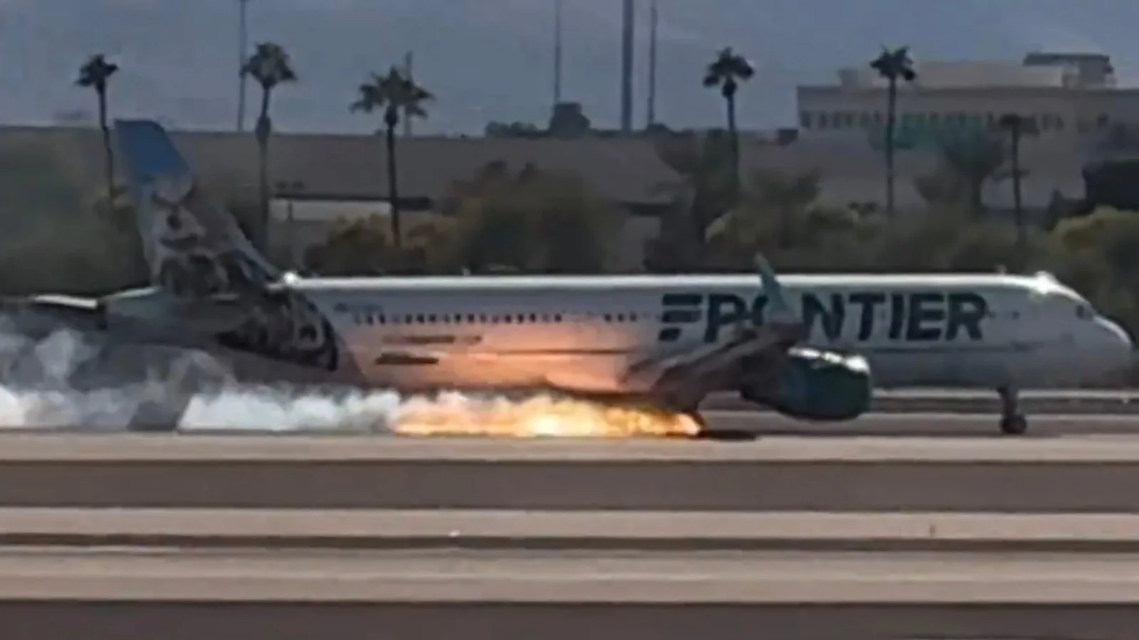 Frontier Airlines jet appears to catch fire while landing at Las Vegas airport, FAA and NTSB investigating