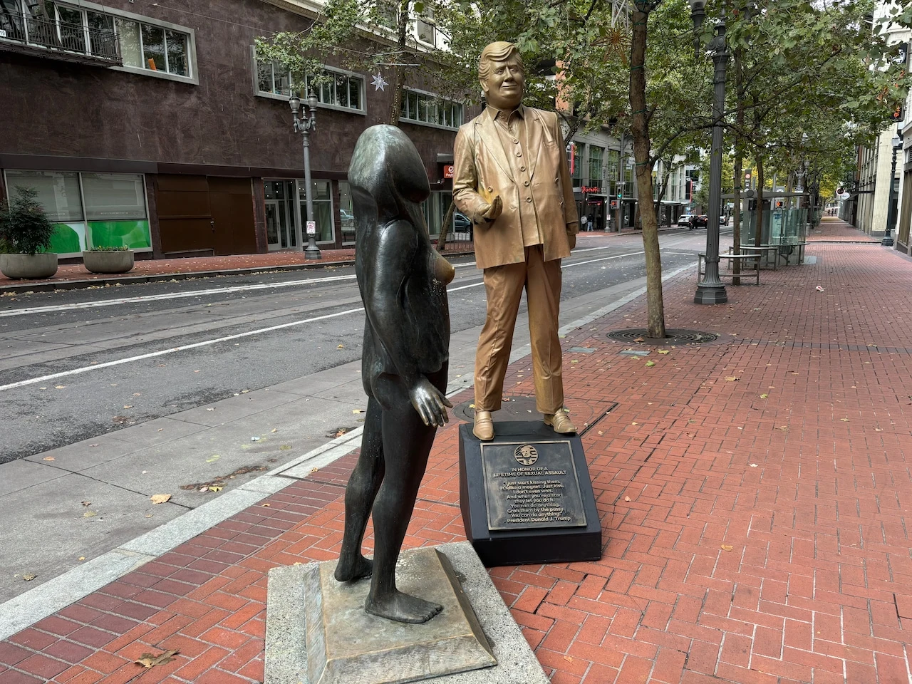 Satirical Trump statue appears overnight on downtown Portland street, only to be beheaded hours later