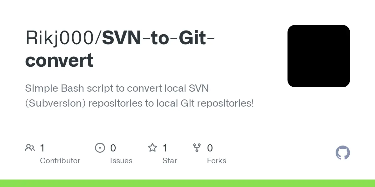 GitHub - Rikj000/SVN-to-Git-convert: Simple Bash script to convert local SVN (Subversion) repositories to local Git repositories!