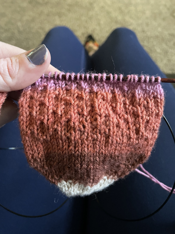 Needed a new car knitting project as my Kelowna sweater is too big now to work on comfortably. So I cast on some socks for me.