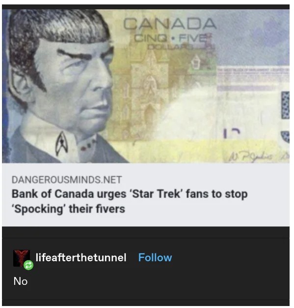 TenForward: Where Every Vulcan Knows Your Name @lemmy.world Gork @lemm.ee 2y ago Live long and suck it Archive link of the meme