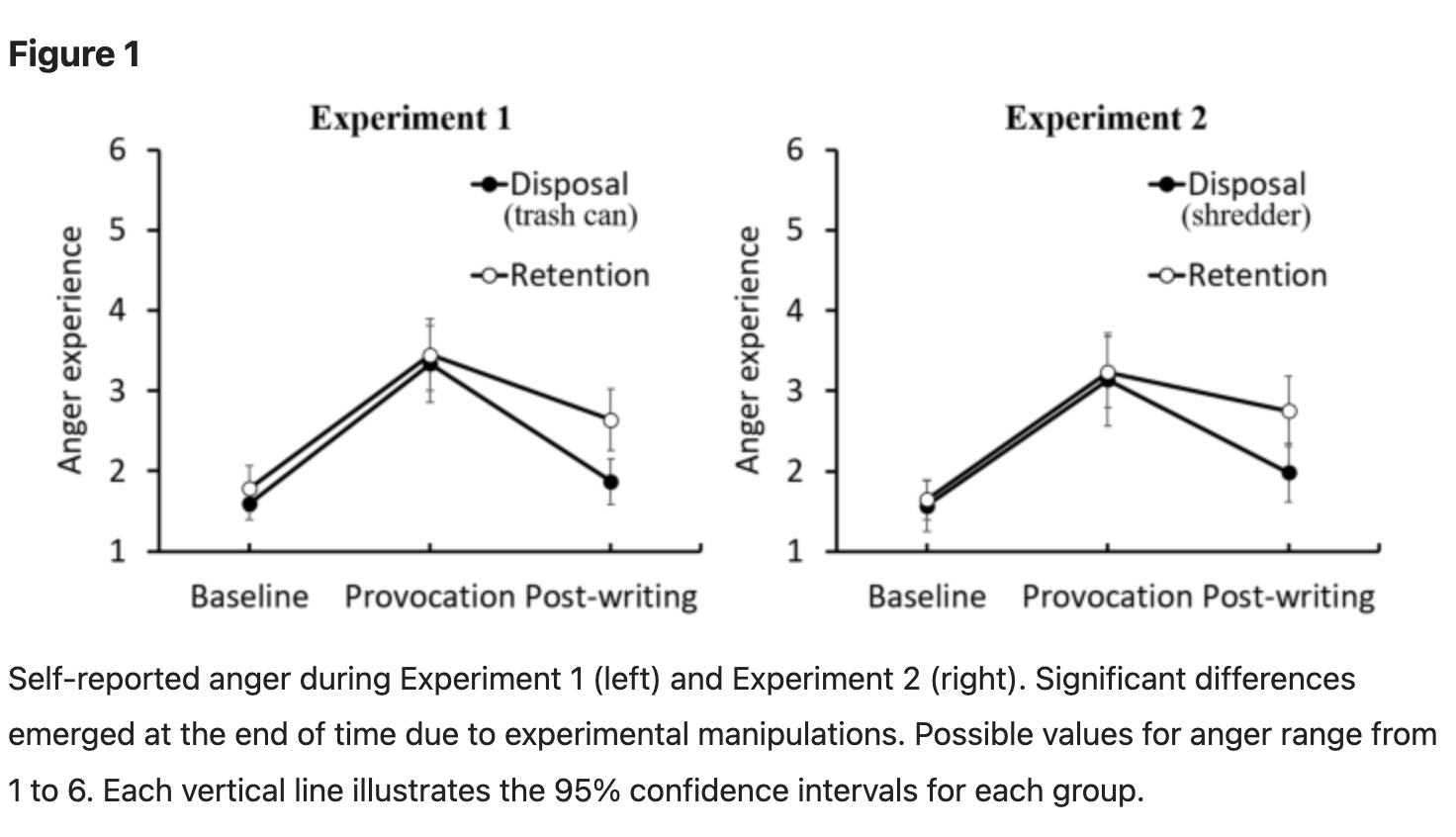 The study involved participants writing about a social problem and then receiving negative feedback designed to make them angry. They were then asked to write about their anger and either throw the paper away, shred it, or put it in a folder. Throwing the paper away and shredding it resulted in a significant reduction in anger compared to putting the paper in a folder.