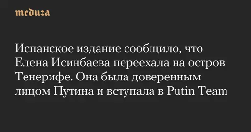 Испанское издание сообщило, что Елена Исинбаева переехала на остров Тенерифе. Она была доверенным лицом Путина и вступала в Putin Team — Meduza