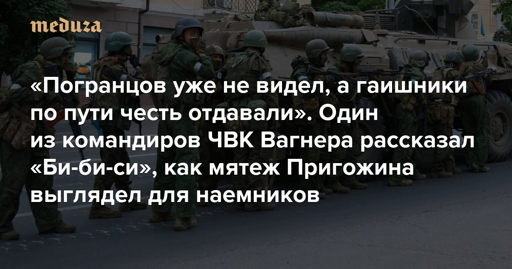 «Погранцов уже не видел, а гаишники по пути честь отдавали» Один из командиров ЧВК Вагнера рассказал «Би-би-си», как мятеж Пригожина выглядел для наемников — Meduza