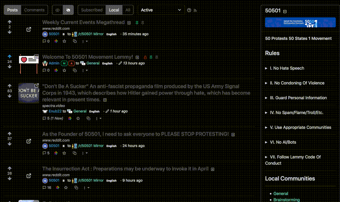 We need to build local state-specific communities on 50501 Lemmy here!