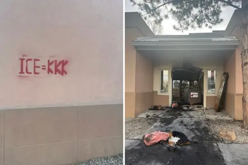 Republican Party's HQ set ablaze, tagged with "ICE=KKK" in New Mexico