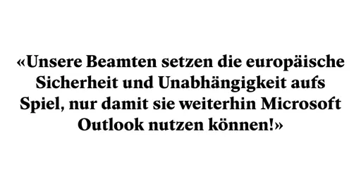 The whole of Europe should be alarmed. We have become a digital colony of Google, Amazon and Microsoft. [...] Our officials are putting European security and independence at risk just so that they can continue to use Microsoft Outlook! That sounds idiotic, but that's how I experience administrations.