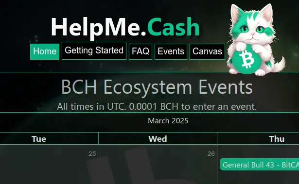 Bitcoin Cash (BCH) @realbitcoin.cash CashDragon @realbitcoin.cash 12mo ago Events Calendar - Find out what's happening in the Bitcoin Cash ecosystem helpme.cash HelpMe