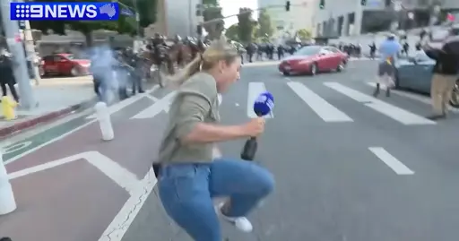 Australian reporter covering Los Angeles immigration protests hit by rubber bullet on live TV