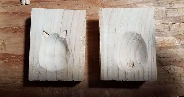 It took a little clean up (trimming the flat disk of extra plastic which forms between the two sides of such a crude mold and adding the faint little face) but it worked alright. After a few tries, the soft pine of the mold started to compress a little, the softer wood around the dark grain receding slightly so the grain marked the plastic.