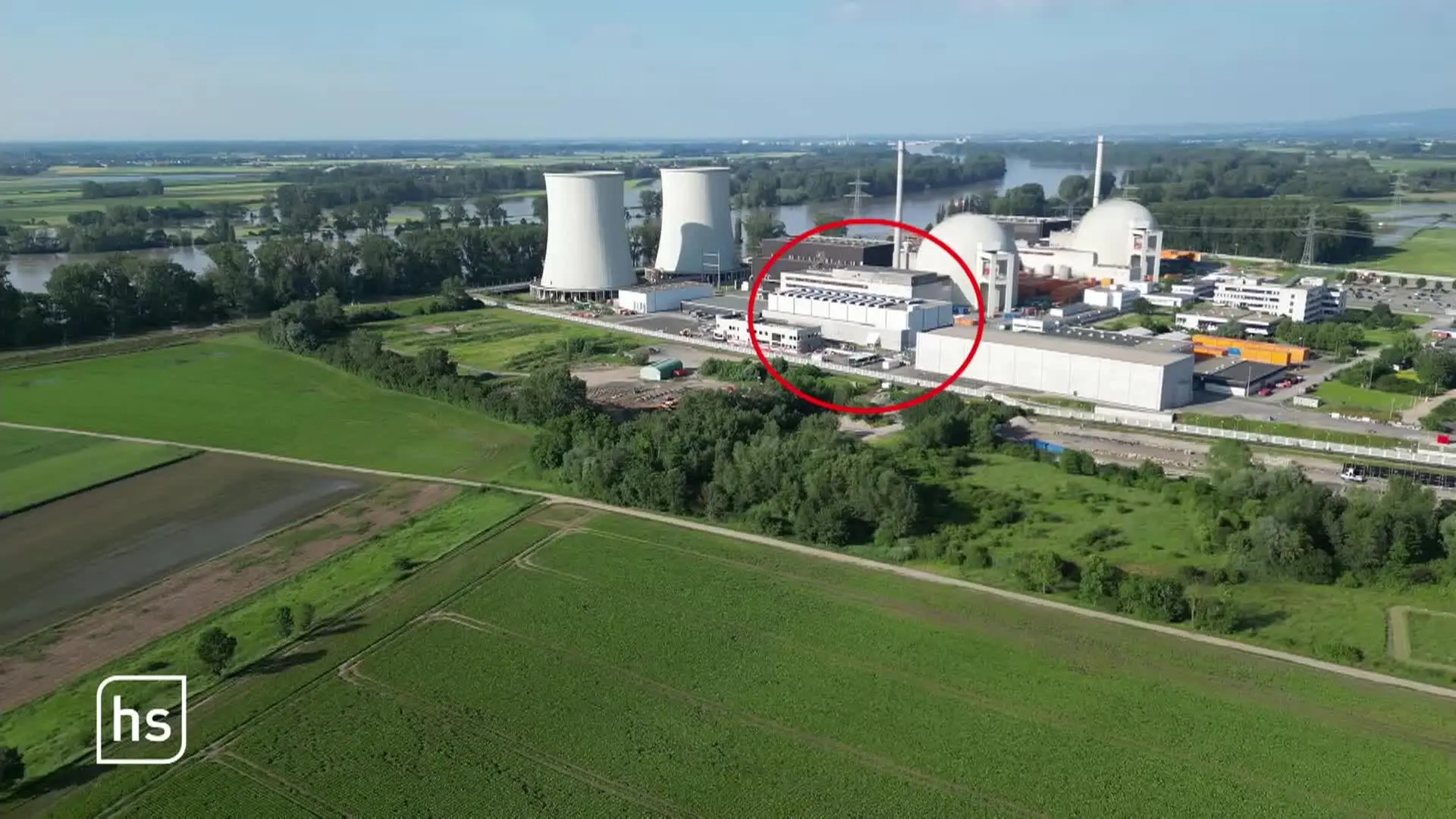 The area of the cooling towers of decomissioned nuclear plant Biblis has been hit by a flood, but there seems to be no threat of contamination as the area containing waste material is on slightly higher ground.
