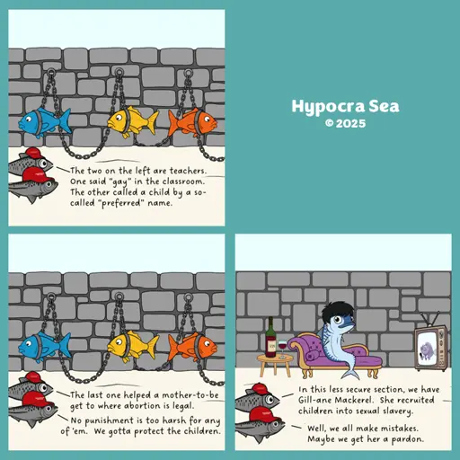 Comic Strips @lemmy.world HypocraSea @lemmy.world 4mo ago We Gotta Protect the Children www.hypocrasea.com We Gotta Protect the Children
