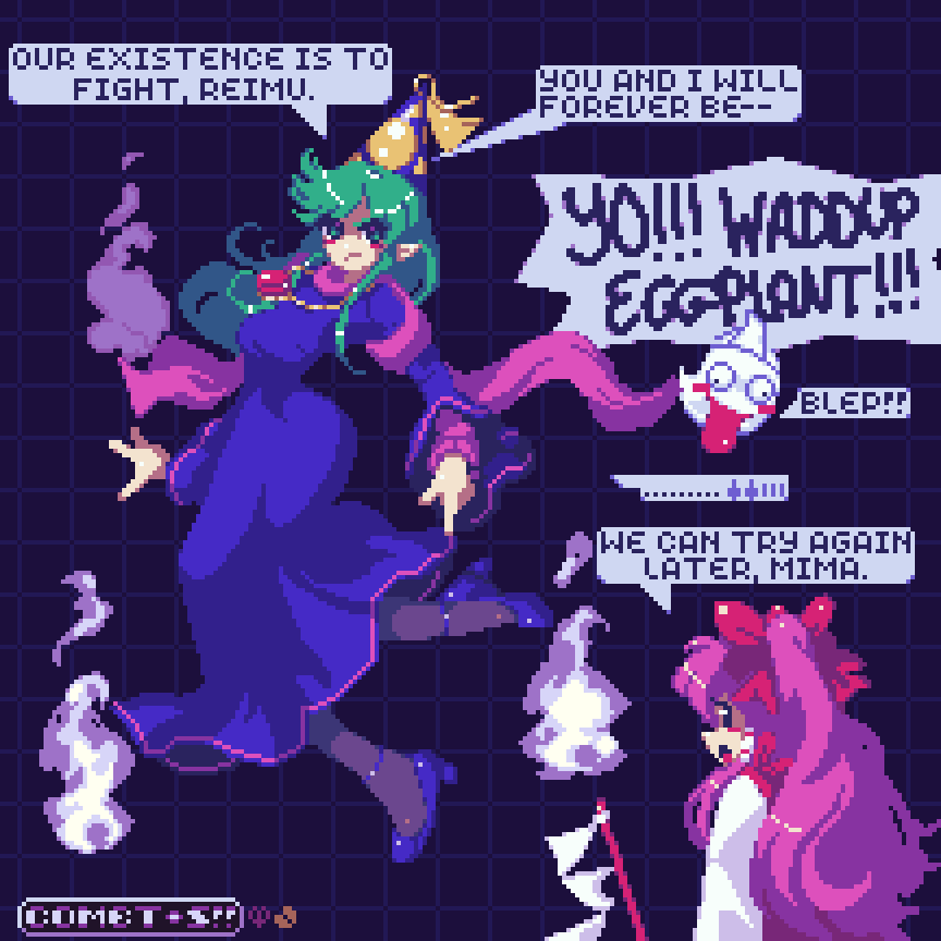 Touhou Art @ani.social zeograd @lemmy.world 7mo ago Teasing mima Source | Author: Comet Summoner | Characters: Mima, Reimu Hakurei, bakebake
