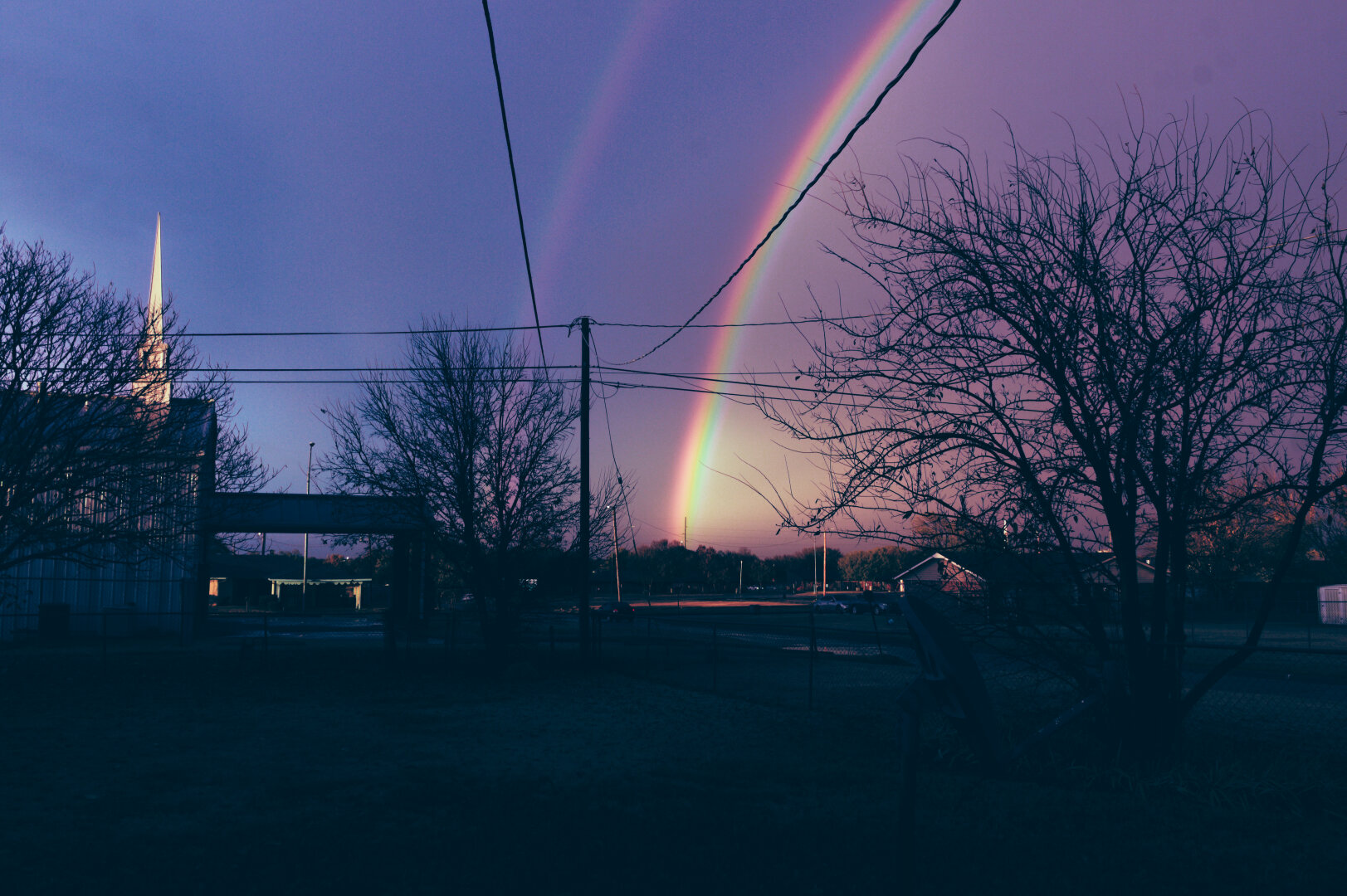 A rainbow popped up in my back yard and I snapped a photo of it. I gave it a 'Polaroid 669 Cold 3' film sim filter.