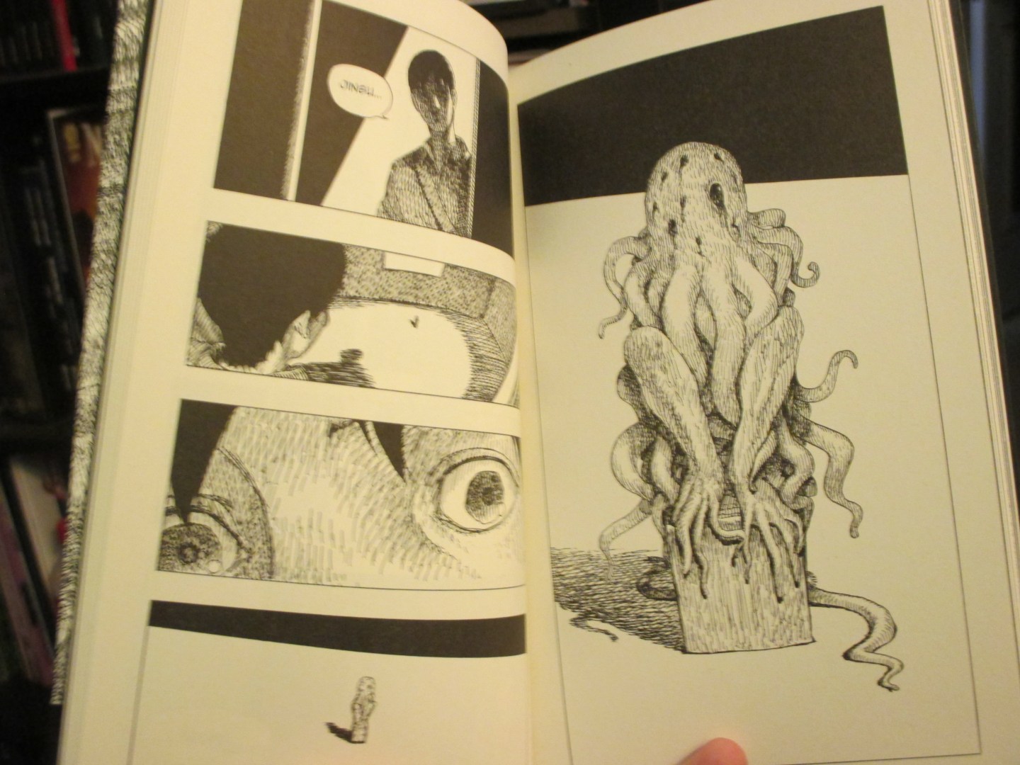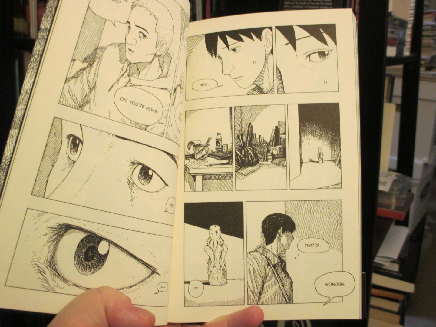University student Wonjun visits his friend Jingu's basement apartment, only to find unsettling changes that are somehow tied to a K-pop star's suicide. Jingu behaves coldly, a strange statue looms in the corner, and reality begins to fracture. Blurring the lines between hallucination and nightmare, this graphic novel by JaeHoon Choi explores guilt and despair through a Lovecraftian lens, creating a haunting tale of emotional and cosmic horror.
