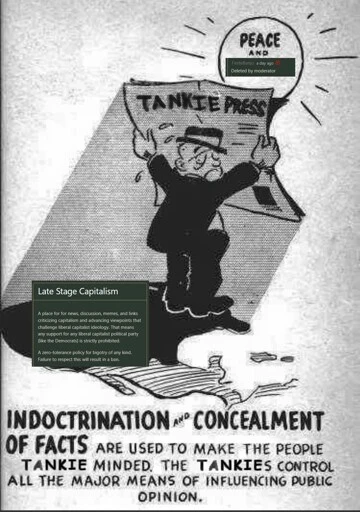 "Tankies tell me the "capitalist media" is hiding the truth from me. Asking what, specifically, is a bannable offence."