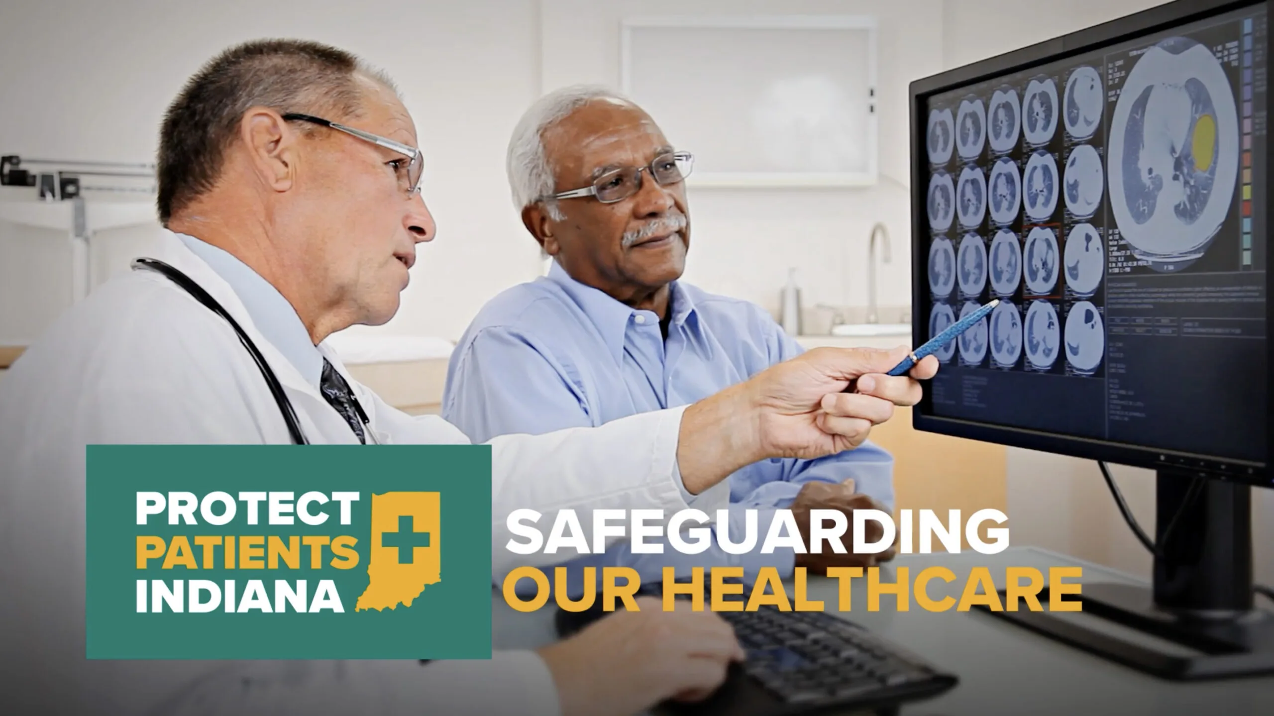 The 30-second ad features generic clips of doctors and patients inside hospitals. An off-camera narrator says Protect Patients Indiana “is committed to safeguarding our health care” by “reducing red tape, supporting local hospitals and their staff” and “ensuring access for all Hoosiers.”