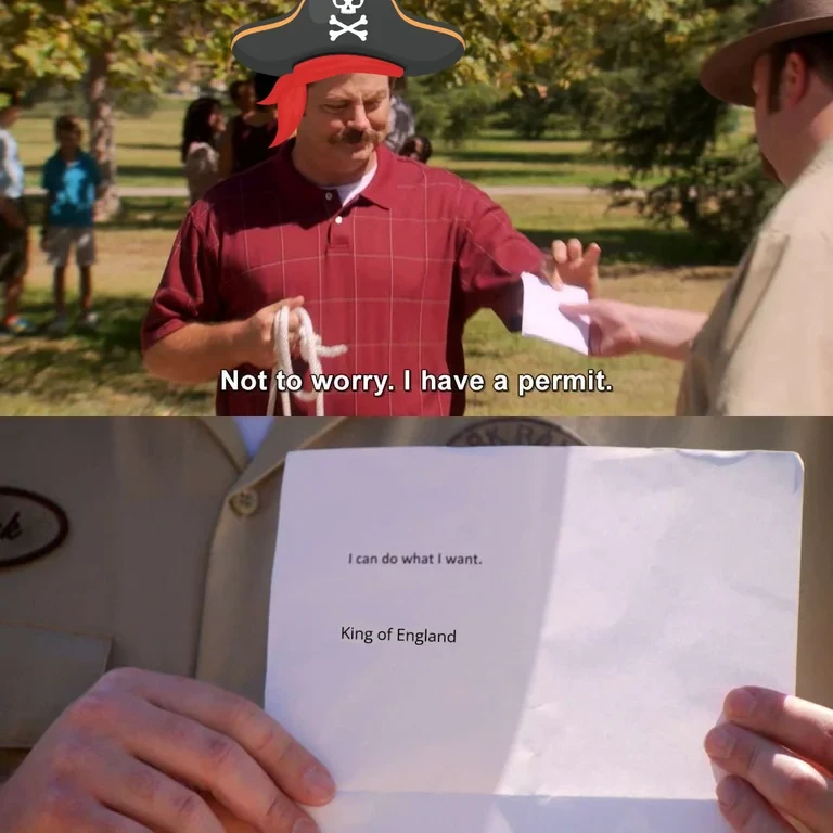 History Memes @piefed.social PugJesus @piefed.social 3w ago Ah, the noble profession of privateering!