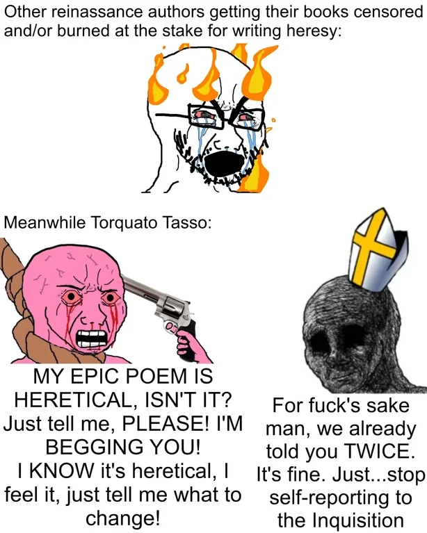 History Memes @piefed.social PugJesus @piefed.social 2d ago NOBODY expects the guy who persecutes himself more than the Inquisition can!