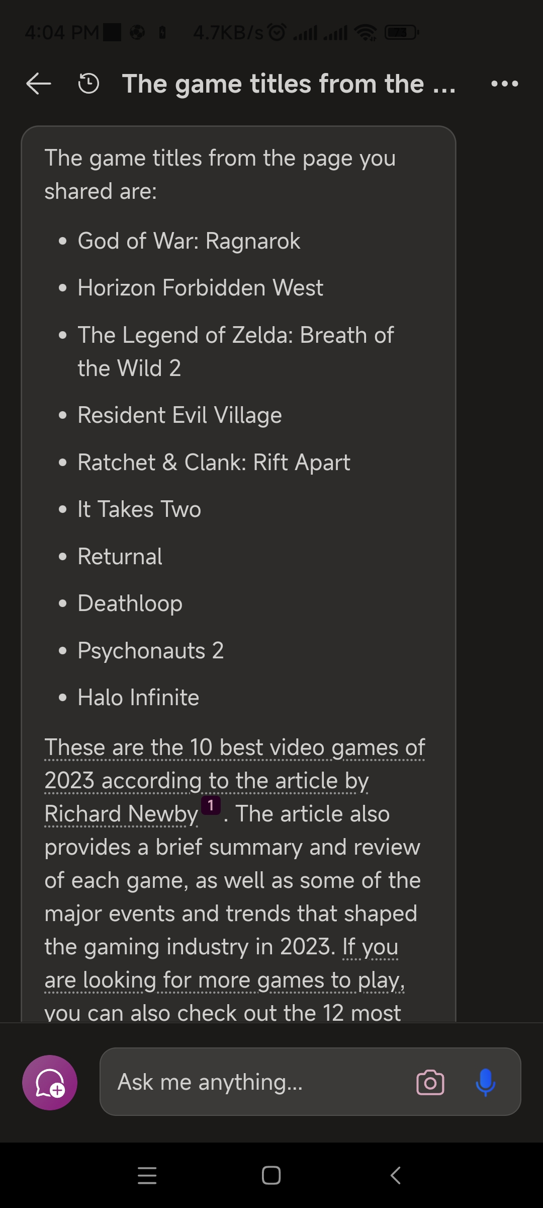 Top 10 games of the year 2023