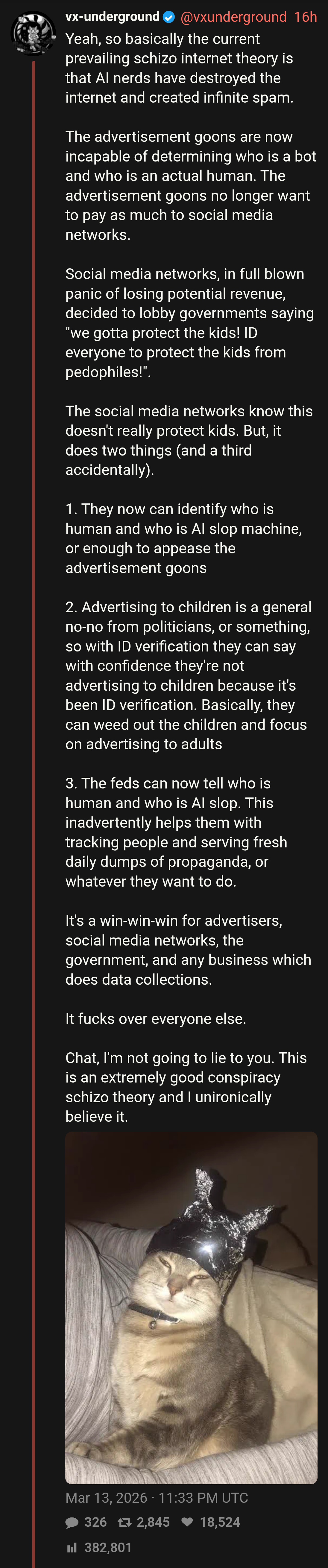Yeah, so basically the current prevailing schizo internet theory is that AI nerds have destroyed the >internet and created infinite spam.