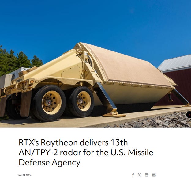 The TPY-2 radars are built by Raytheon, and are scarce. This is a press release from Raytheon from last May, 2025, after the company delivered just the 13th TPY-2 radar, and which was the first such delivery to the US Missile Defense Agency.