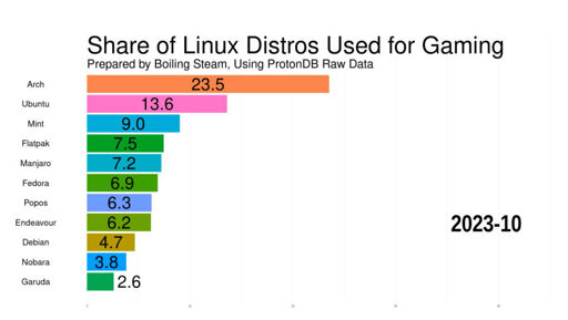 Peertube @lemmy.world Distros Used for Gaming on Linux, Evolution over Time - November 2023 Edition - Goodbye Manjaro!