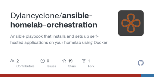 • This is definitely inspired by ansible-nas! I'd also used it for awhile, and made my own fork to add/fix things since the project has gone a little dormant. I started making so many changes though that I started fresh and it turned it into a whole project of it's own. You can see a list of differences here: https://dylancyclone.github.io/ansible-homelab-orchestration/guides/introduction/