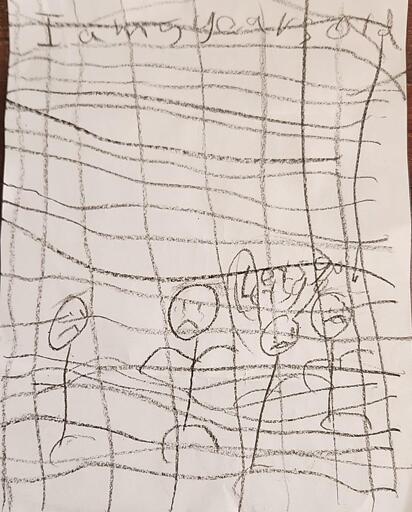 Drawing by a 5 year old girl at the ICE Children’s Concentration Camp in Dilley, TX. This child turned 5 in detention & has spent almost 20% of her life jailed along with 4 of her siblings - Lemmy