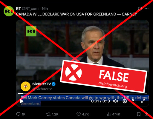 Europe @lemmy.dbzer0.com Russian propaganda outlet RT falsely claims “Canada will declare war on USA for Greenland — Carney”