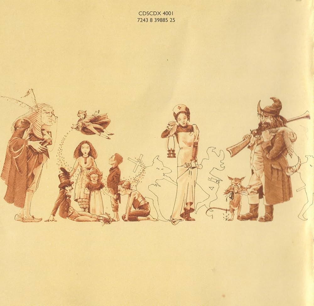One cool thing that’s lost in just a digital image is that the original vinyl had a hexagonal shape instead of a square shape — possibly to make use of leftover packaging material from their previous album The Low Spark of High Heeled Boys