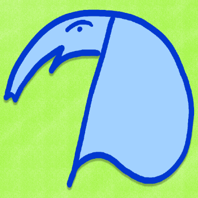 Profielfoto: Eenvoudige digitale tekening van een hoofdletter D in de vorm van een olifant met een groot oor, lichtblauw op een groene achtergrond.